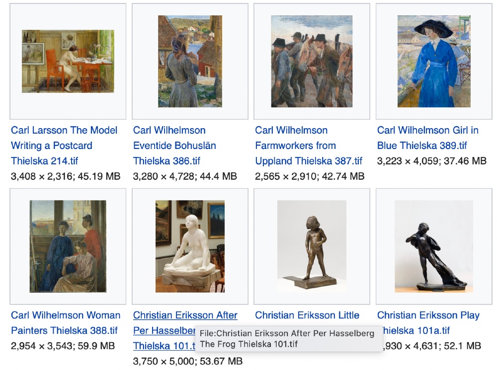 Thielska har en av de finaste samlingar jag har sett. De har även laddat upp högupplösta bilder från sin samling till Wikimedia Commons och fler kommer under 2020. Hänvisa till Thielska och fotografen när du använder bilder från samlingen.